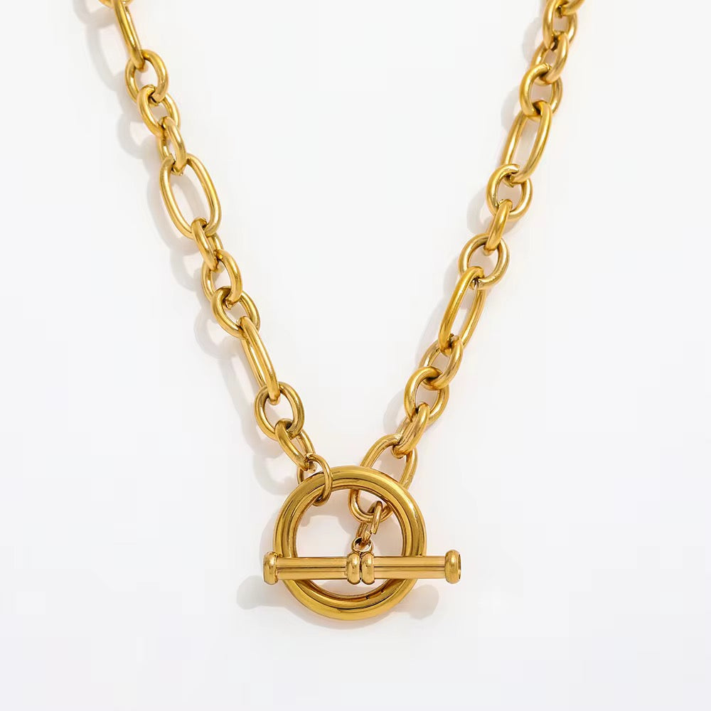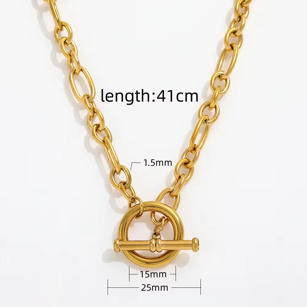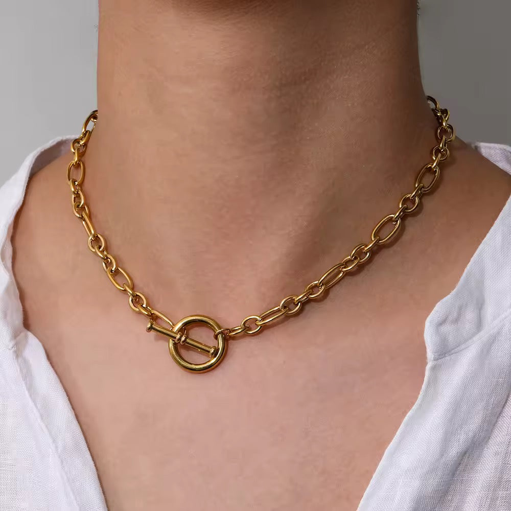 Diese elegante Kette (41cm) aus Edelstahl ist ein absoluter Eye-Catcher. Der kreisförmige Verschluss ermöglicht es, die Länge der Kette nach Belieben anzupassen. Ob locker hängend, kürzer getragen oder mehrfach um den Hals gewickelt – dieses vielseitige Schmuckstück lässt sich immer wieder neu stylen und verleiht jedem Look eine besondere Note.
