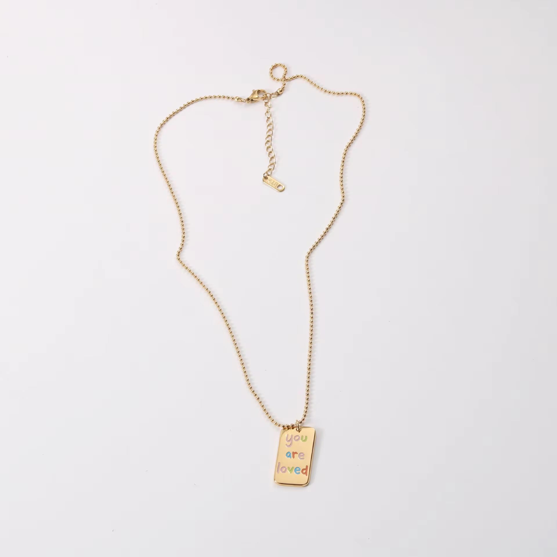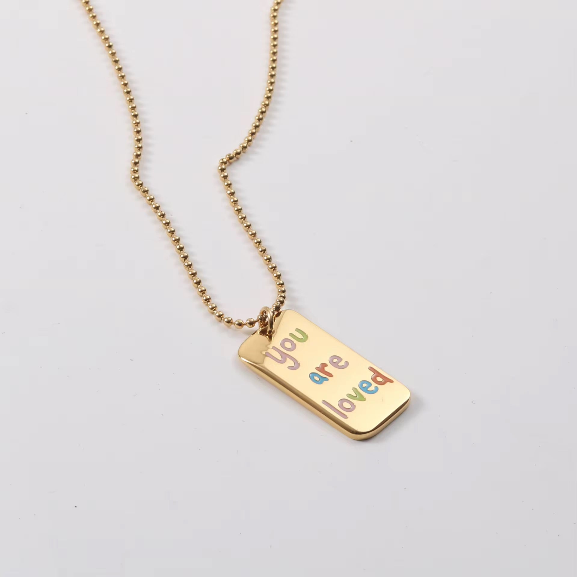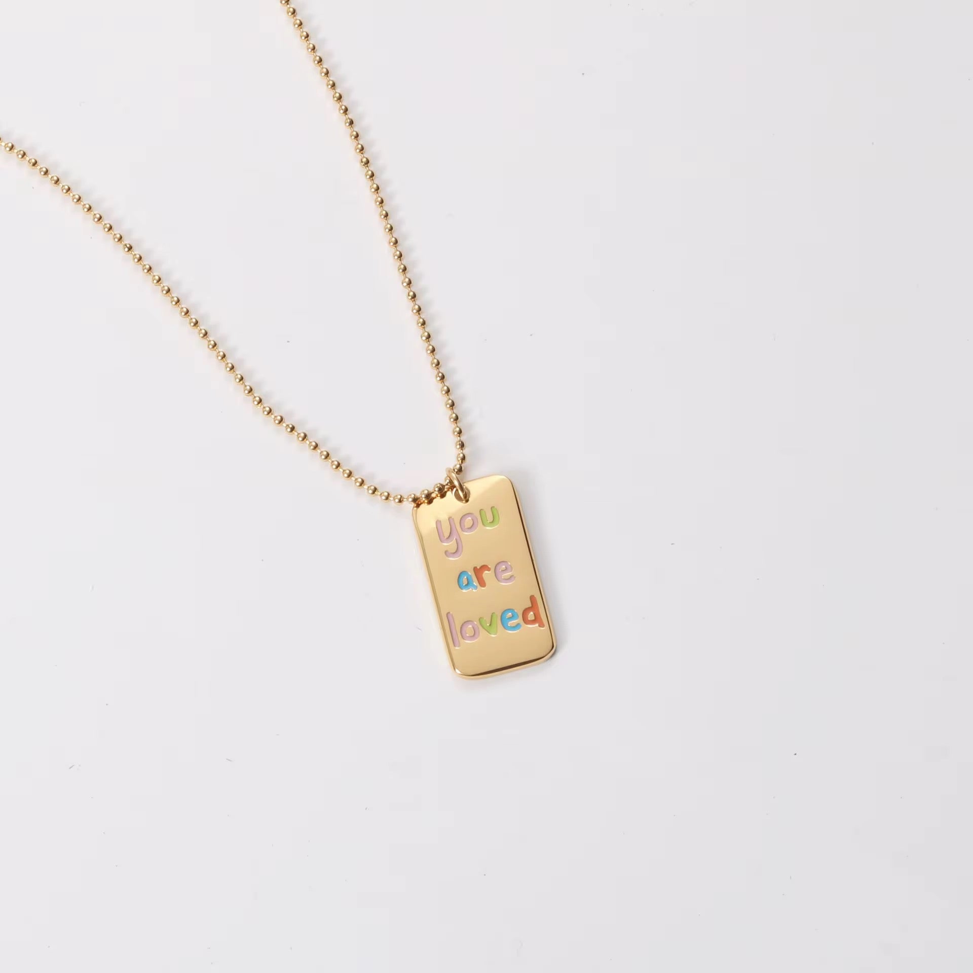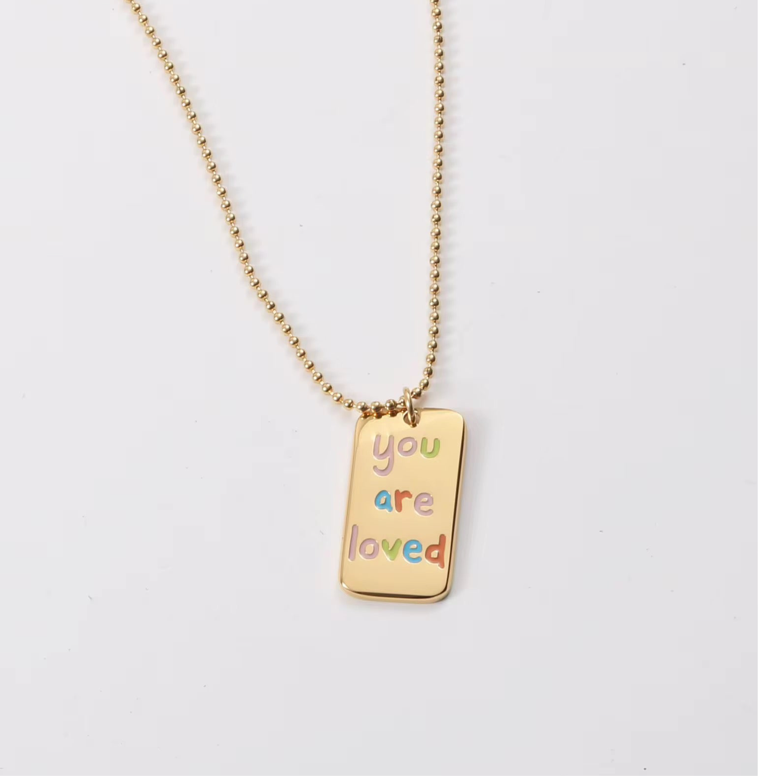 Diese trendige Kugelkette (45 + 5 cm) trägt einen stilvollen Anhänger mit der Gravur „You are Loved“ – ein Symbol für schlichte Eleganz und liebevolle Bedeutung. Ob als täglicher Begleiter oder als besonderes Geschenk – dieses Schmuckstück spricht direkt aus dem Herzen.